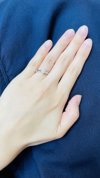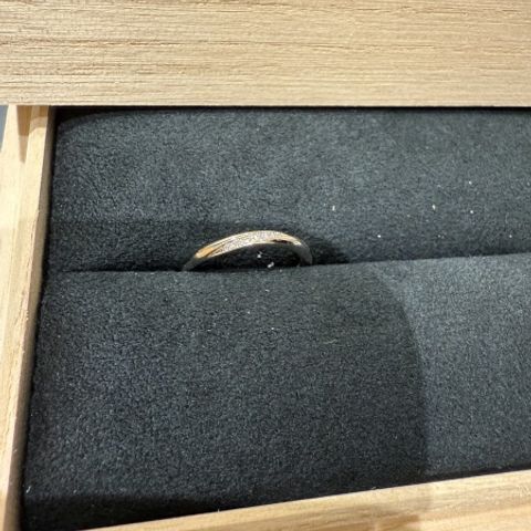 とてもシンプルなデザインなのですが、1つのダイヤモンドがとても輝いていてシンプルな中に存在感があり、婚約指輪と重ねて付けてもお互いを引き立てる感じがありすごく気に入っています! 毎日付けるのでその毎日がとてと楽しみです!