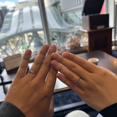 医療福祉系の仕事をしているので、勤務中に患者様を傷つける心配がないデザインを重視して指輪を探していました。 この指輪はダイヤモンドがたくさんあしらわれているのに、表面がなめらかで安心して着用できるところに惹かれました。華やかさと実用性の両立が嬉しいです。 さらに、リングの裏側に誕生石を入れられる点もお気に入り。ふたりらしさをさりげなく込められるところがとても素敵です。 I-PRIMOの結婚指輪にはひとつひとつ意味が込められていて、私たちが選んだ指輪の意味は 「あなたが笑えば、わたしも笑顔に。」 この言葉に深く共感し、私たちもずっとそうありたいと思い購入を決めました。 ふたつのリングを合わせるとハートの形になるデザインも印象的で、歳を重ねても大切にしていきたいと思える指輪です。 おじいちゃん、おばあちゃんになっても、この指輪を見るたびに初心を思い出せそうです。 「この人とずっと一緒にいたいな」と心から思いました。 シンプルなのにちゃんと可愛くて、どんな場面でも自然になじむデザイン。 指輪を見るたびに、仕事も日常も彼との思い出も全部がんばれる気がします。 彼の優しさも、この指輪の輝きも、私のお守りのような存在です。 気づけば彼が支払いまでスマートにしてくれていて、思わず心が温かくなり本当に頼もしいなぁと感じました。