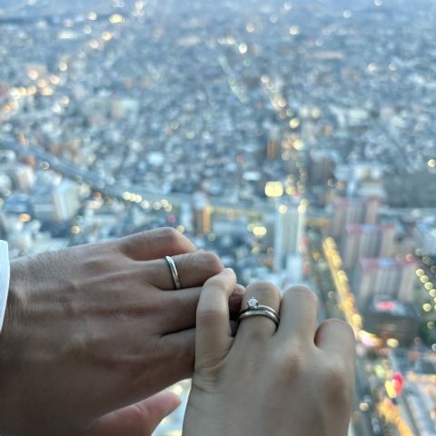 お互いに似合うリングの種類が違うのでペア感にならないのが最後まで気になっていましたが、このブランドはリングの内側にふたりのイニシャルや記念日を無料で刻印してくれるサービスがあるため、見えないところで2人だけの特別感を演出することができました。また内側にもそれぞれが選んだメッセージ性のあるダイヤをオプションで埋め込み、世界で一つだけの指輪を作ることができたのは満足です。