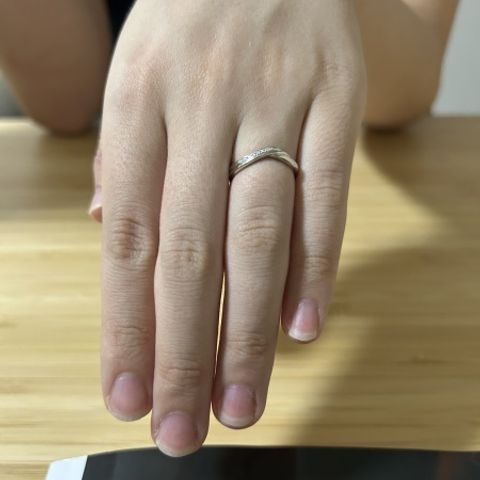 手が小さく華奢な指にも馴染む、ほどよく華やかなデザインが気に入ってます。 初めて試着した時にもおすすめされた点ですが、本当に着け心地がいいです。 普段はアクセサリーをつけないので指輪は初めてですが、つけてても気にならないくらいので日常生活になじむイメージができました!