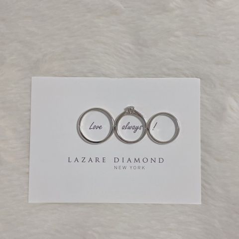 つけ心地がよく、ダイヤモンドが7色にキラキラと光り見惚れてしまい、いろいろなブランドを比較するつもりが即決でラザールダイヤモンドに決まりました。 お値段も予算内で購入でき、彼に感謝したいです。 指輪のことも、似合う指輪もわからない私たちにとっては、担当してくださった方の丁寧な接客にも大変安心しました。