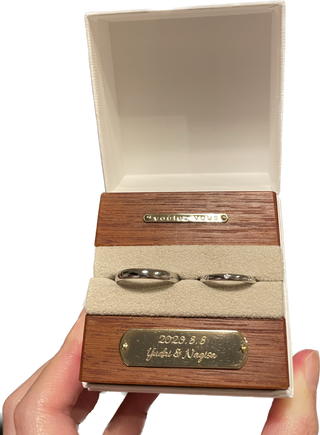 指輪のデザインや刻印など細かくこだわりを持って作成できることがかなりおすすめです。2人で考えて一生に一度のものを作れる時間は本当に思い出になりました。刻印はイラスト風のデザインをスタッフの方のご提案をいただきながらイメージどおりのものを作ることができました