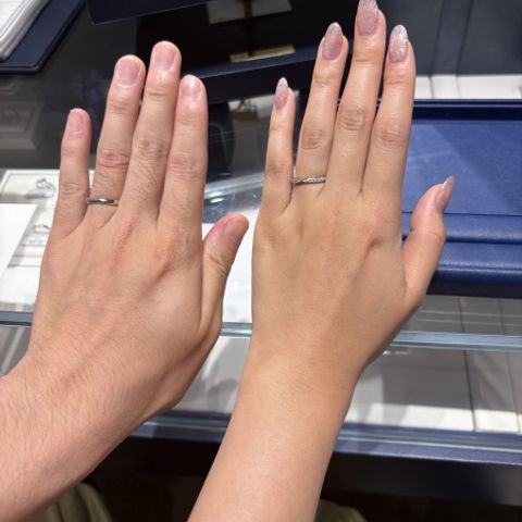 価格は2人合わせて25万程で検討していました。ダイヤモンドの付き方が似たようなものが多く、少しでも違うデザインが良くてたくさんのデザインを見ました。ダイヤモンドの輝き方を店外で確かめるのもとても大事だと感じました。