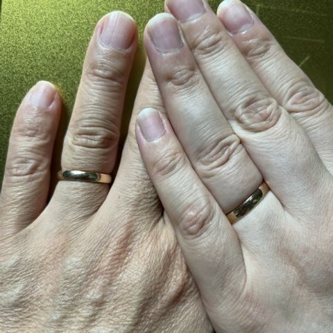 普段の服装から浮かないにもかかわらず、洗練された上品なデザインが魅力です!私自身、普段のアクセサリーにシルバーの指輪をつけるのですが、結婚指輪と合わせても浮きすぎずとてもいい感じです! さまざまなデザインから、加工具合や形、色味を選べたので、納得のいく指輪になりました。色々と考える時間もとても楽しかったです!