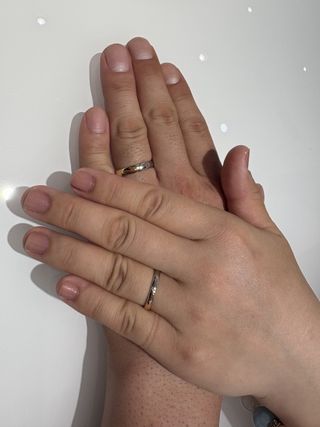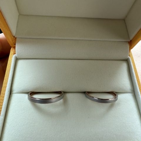 シンプルな指輪が良かったのですが、周りと同じものは避けたかったのでシンプルかつ自分たちらしいデザインにできたことが良かったです。2人でデザインや刻印を考える時間もとても楽しく思い出になりました!また、毎日つけたいので変形がしにくいリングというところがとてもいいなと思いました。