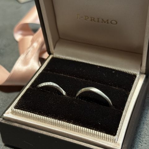 指の形に合うように緩やかなウェーブのものを選びました。着け心地も違和感なく、常に身につけていられます。同じデザインで、女性はダイヤ、男性は加工にしてもらったので、お揃い感もあって、とても気に入ってます。