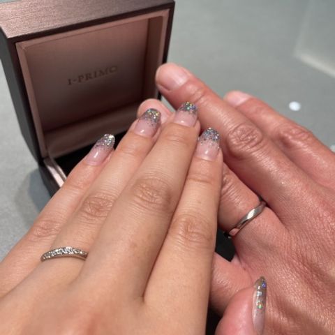 パーソナルハンド診断をしてもらい、自分の指に合う、緩やかなウェーブでつけ心地がとてもよかった。デザインがシンプルで華奢でかわいくて求めていたものだった。 男性の方はデザイン性もあり、人と被らないのが良かった。