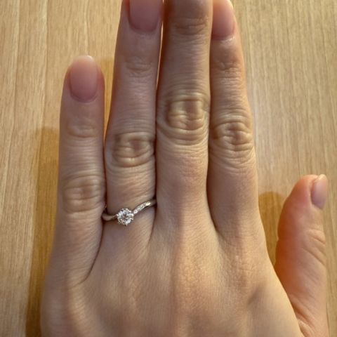 シンプルで一粒だけのダイヤモンドはすごく輝いており、着け心地もいいのでこれにしました。素材もずっと付けていても大丈夫な鍛造なので安心して毎日つけていられます。指輪の内側についている刻印も凄く綺麗で全部に見惚れてしまいます!