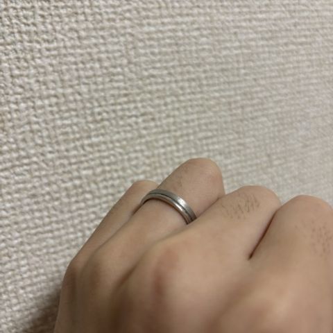シンプルなデザインだけど、よく見ると個性を感じる指輪です。自分側につや消しをしてもらったため、相手から見るデザインと、自分から見るデザインが異なる点もお気に入りです。つけ心地が抜群に良く、つけていることを忘れる時があります。