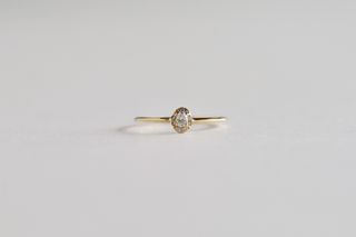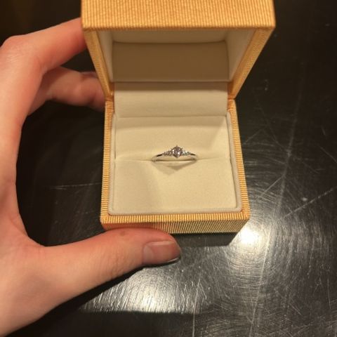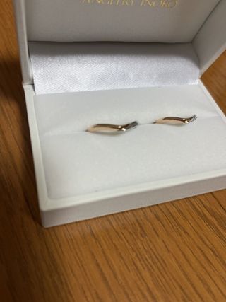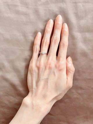 シンプルなデザインで、普段からつけやすいものを探していましたが、ピッタリなものが見つかりました。正面からだけでなく、リングを横から見た時にもダイヤが見えるのがおすすめです。また、ぴったりの指輪が見つかるよう診断もしてもらい、少しうねった形のデザインを選びました。