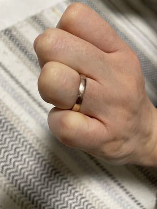 仕事が福祉職で普段ジャージを着て仕事をしているため、仕事場でも馴染む指輪が欲しくてこのデザインに決めました。本当にシンプルながらもさり気なくキラッと光るのが好きです。またどんなシーンにも合わせやすいです。角度によって見え方が違うためそこも素敵だなと思います。