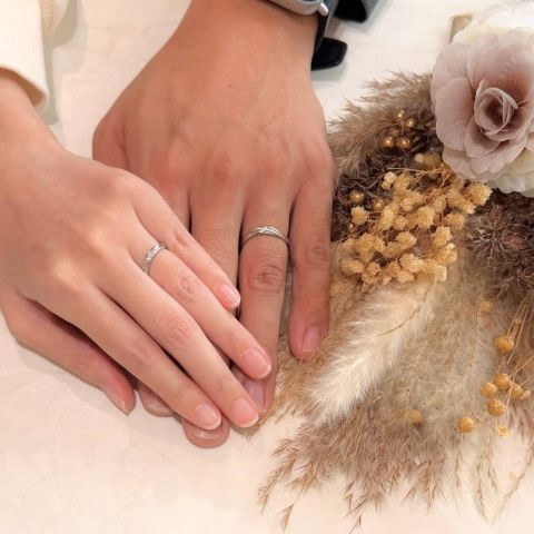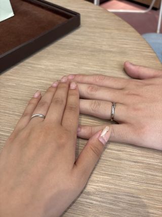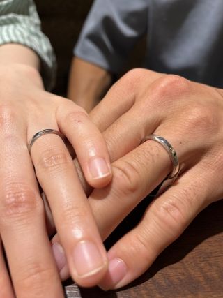 他の店舗にも行き、色々なブランドを見せていただきましたが、一番着け心地がよく、手に馴染むところが良かったです。また、他にないデザインでとても気に入りました。2人とも納得いく指輪を選べて満足しています。