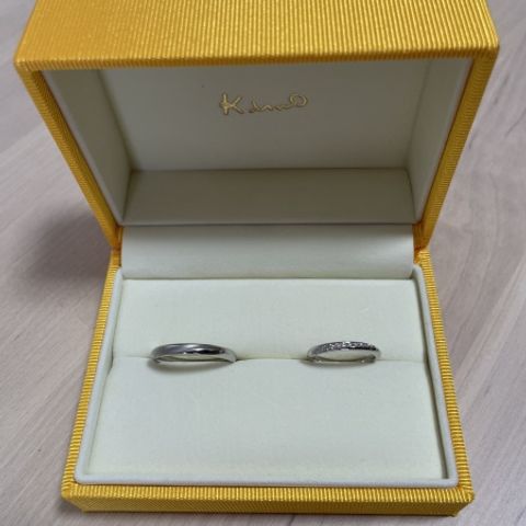 他のブランドよりも明らかに着け心地が良く、つけ外しもスムーズ。デザインもシンプルで良い。他のブランドにも同じようなデザインはあったが、ケイウノのものが気に入った。夫の指輪にはマット加工をしてもらって、シンプルながら個性を出すことができた。