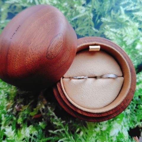 シンプルで華やかすぎず指に馴染むデザインです。 光沢がとても綺麗で、指輪が目に入る度にとても嬉しい気持ちになります。 つけ心地もとてもよく滑らかに指に入ります。 指輪の箱が木で作られており特別感があります。