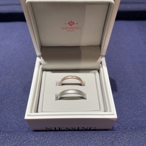 指輪探しの時にさまざまなブランドを周りそれぞれの良さがあった。オーダーすることにより、自分たちのイメージする指輪を作成することができた。男性側はシンプルかつ女性側のデザインに寄せ、太めに作ることで存在感がある指輪となった。