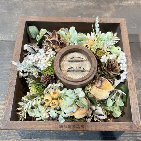 指輪がマットのものとグロースのところがあり、その時の気分で見せ方を変えることができること。 刺繍は結婚記念日と夫婦の名前を入れてあること。 婚約指輪がゴールドなので奥様は結婚指輪をピンクゴールドにすることでゴールドの統一がでていい事。