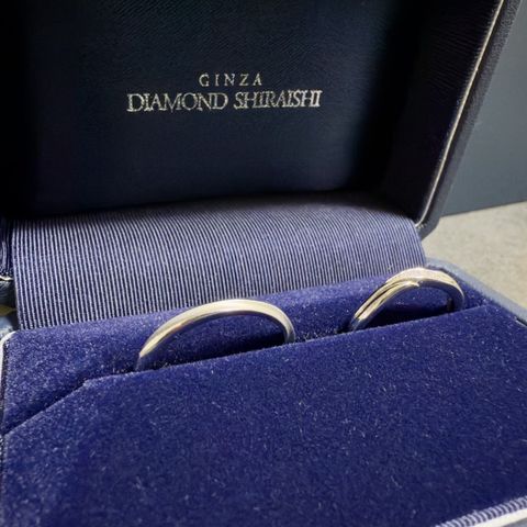 女性のリングはダイヤが両サイドにあり華やかな印象でそちらも素敵でしたがシンプルなものが良かったので男女でお揃いのデザインにしました。シンプルながらもオリジナル感を出したかったので真ん中の窪んでいる部分はマット加工にしていただいたので仕上がりに満足しています。