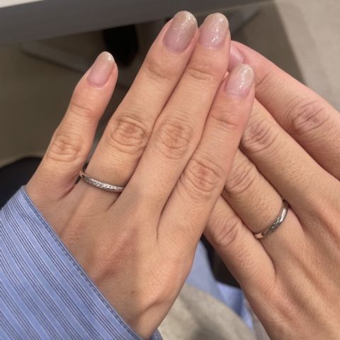 2人のそれぞれの骨格に合わせ、1番指が綺麗に見えるデザインを選びました。毎日ずっと身に着けるものだからこそ、着け心地なども重視しました。シンプルなデザインではありますが、何より着け心地が本当に気に入っています。