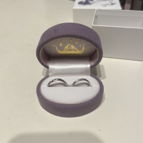 色んなでデザインがある中で、自分たちらしいデザインを探していたので、デコボコしているのが可愛くてこちらに決めました。 長く身に付けていくものなので、今はキラキラしてますが傷がついたり、自分色にくすんでいったりすのが楽しみです。