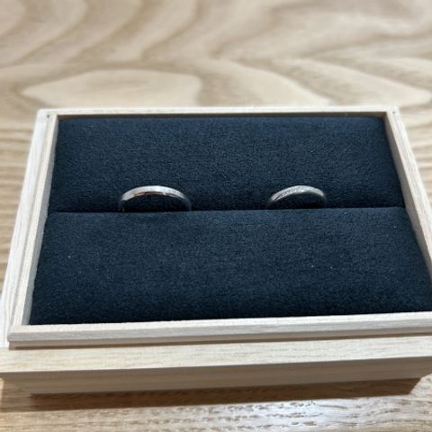 他の人とあまり被らないデザインがいい!と探していたところ、シンプルなストレートのラインですが、上下にミル打ちがされているとてもいいデザインを見つけました。また、彼は艶消しをしたかったのですが、彼と私のつや消しするかどうかをそれぞれ選ぶことができ、お互いが満足する指輪になりました!