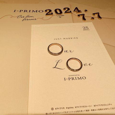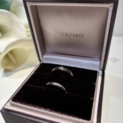 指輪は細めのデザインで指輪の真ん中のデザインが他店の指輪には無かったので、可愛いと思いこちらに決めました!男性指輪もシンプルで細めのデザインでお互いに気に入っています。 内側にイニシャルも印字して可愛く仕上がり満足です!