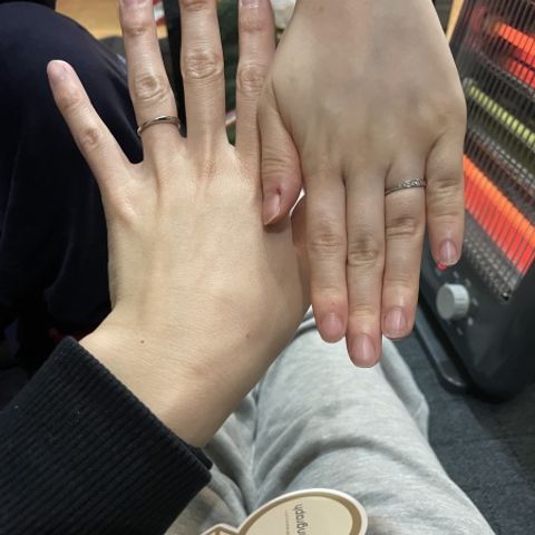 他のブランドもいくつか試しましたが、とにかくつけ心地が全く違いました!手を握りこんでも気にならず、普段アクセサリーをつけない旦那もつけていやすそうと言っていました。双子ダイヤモンドという1つの原石を2つに分けてそれぞれの指輪に付けられるのもロマンチックで気に入っています。旦那がマット加工が好きで、それを入れていただけたのも有り難かったです。