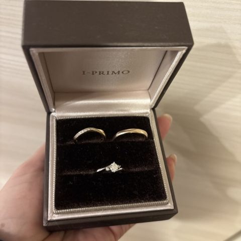 指輪は【ノクターナルコンビ】にしました。ハンド診断をしてもらい、お互いこれが1番合うという事でこの指輪にしました。着け心地もよく、普段使いもしやすいデザインでとても気に入っています。指輪のコンセプトもいいなと思いました。