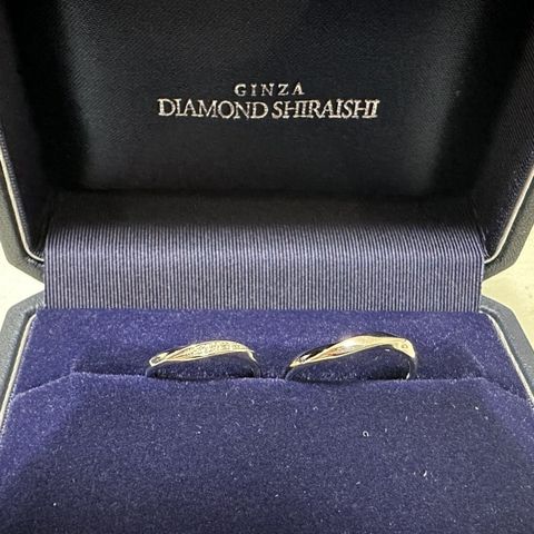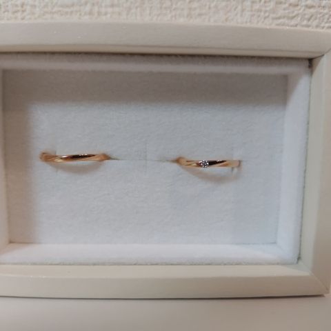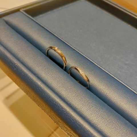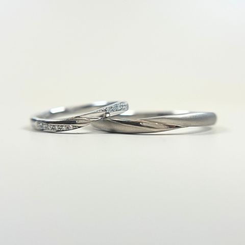 メンズはマット加工をしてもらい、普段使いしやすいものを選びました。 レディースはウェーブタイプのもので、ダイアが二ヶ所に散りばめられているものを選びました。 2つともそれぞれの好みに合う仕上がりとなり良かったです。