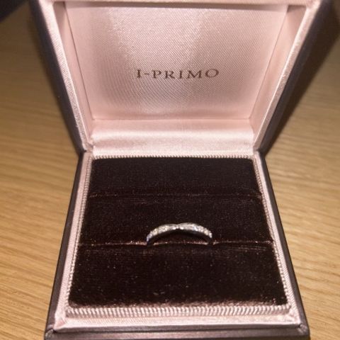 ダイヤモンドハーフエタニティが欲しくてお店をまわりました。ダイヤモンドがとてもきれいなのと、回りの打ち込みがキラキラして気に入りました。つける時に滑らかなのも気に入っています。つけっぱなしでも汚れないし傷もつかなくで良いです。