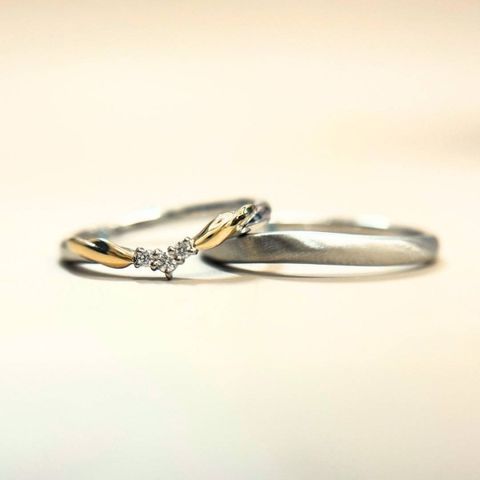 ダイヤモンドの入り方斜めになっていて可愛く、とても輝いています。リング幅が狭いためつけ心地もとても良いと感じました。男性の指輪もマット加工がされていてひと工夫されているところにとても魅力を感じました。