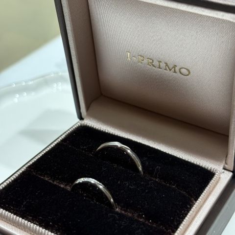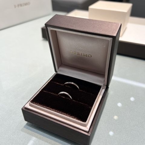 いくつか試着させていただいた中で、普段アクセサリー類を一切付けない彼も「つけ心地」がよいと感じたことが決め手でした。私自身もメレダイヤのきらめきにときめきましたし、彼の指輪のマット加工とペア感がしっかり感じられて気に入りました。