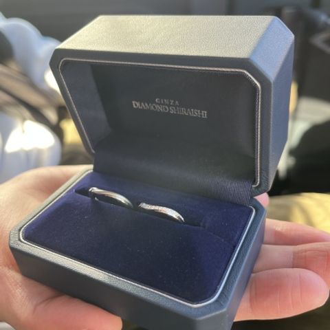 ダイヤモンドの輝きがとても綺麗です。いくつか指輪を提案していただきましたが、こちらのデザインが夫婦ともに断トツでお気に入りで迷わず決めることができました。着用時、対面からでもダイヤが見えるデザインなので、いつでも自信を持って着用できそうです。
