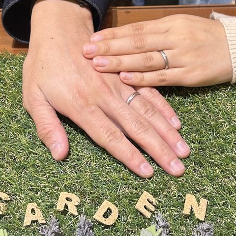 形にこだわりました 2人で作っていく形でしたので、いわゆる結婚指輪ぽくしている重々しい感じではなく、カジュアルでデザインにこだわった形にしております。 日常でもさりげなくおしゃれにつけ続けられるのではと思います