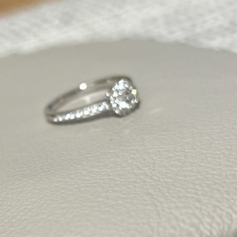 大きなダイヤがひとつ付いていて普段はもちろん光が当たったら特にキラキラ輝きます。シンプルなデザインなので普段使いもしやすく、結婚指輪との重ね付けもしやすいです。シンプルだけどしっかりした作りなので存在感もきちんとあってとても気に入っています。