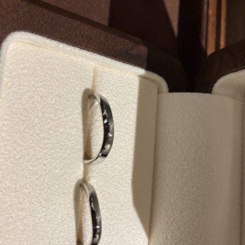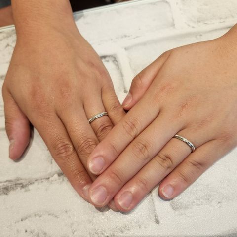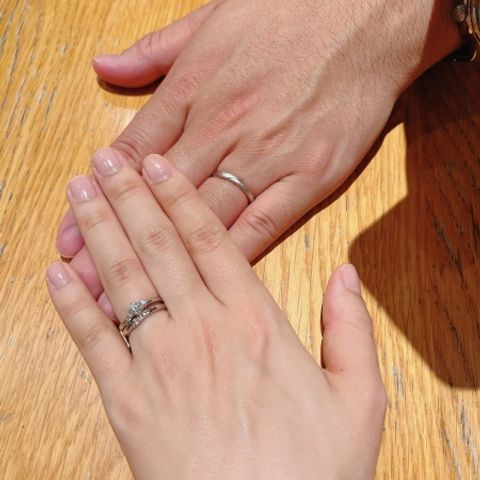 店舗で選ぶ際にとても迷っていたのですが、色々な指輪を試着してみた結果、夫婦お揃いにしたかったのでシンプルなデザインを選んだ方が年齢を重ねても飽きないデザインだったのでとても満足しています。 装着していって、傷も含め楽しみです。