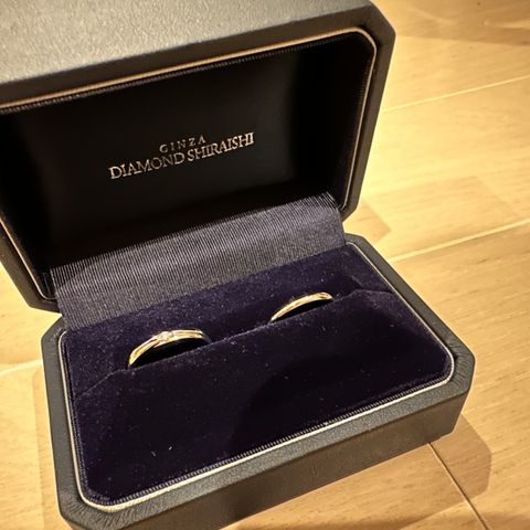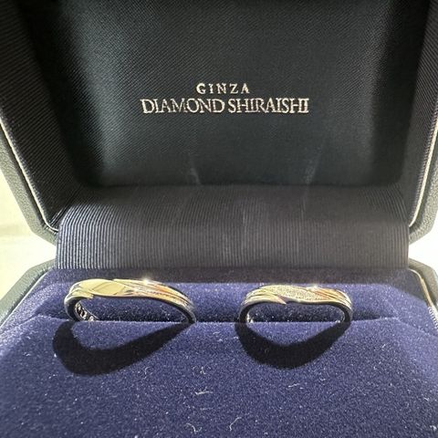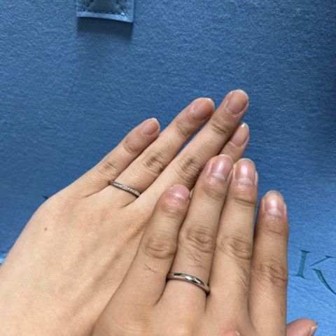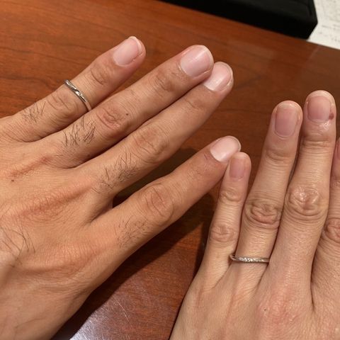 購入後すぐの投稿で、現在作成していただいているため、手元にまだ指輪はありません。楽しみに̩待たせていただいております。 はじめはゴールド希望でしたが、やはり付けてみるとプラチナが結婚指輪という感じがしてプラチナに決めました。 デザインはシンプルめが良かったのですが、実際に付けてみると斜めのラインが指を綺麗に見せてくれたことと、歳を重ねても馴染んでくれそうだと直感的に感じ、ウェーブのデザインに決めました。 相手の指輪のデザインにダイヤモンドポイントがあしらわれていたことも、とても特別感が出ていて決め手の1つとなりました。