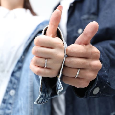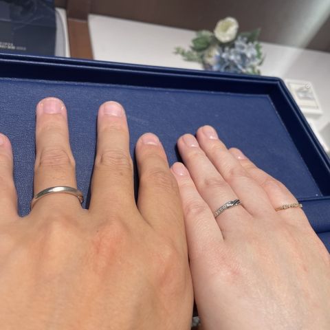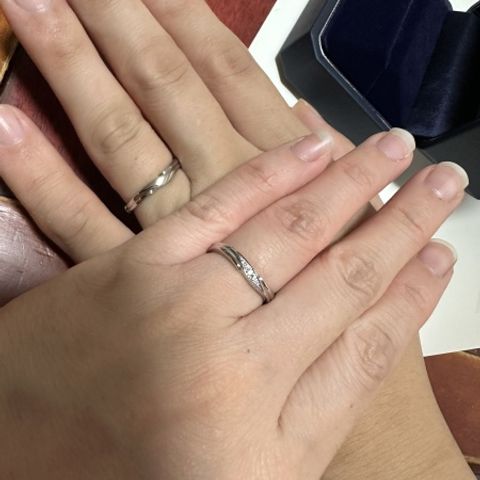 婚約指輪は、 シンプルだけれども形がこだわられており、ダイヤを支える部分の形が気に入ったためこちらにしました。 結婚指輪は、 着けた見た目が気に入ったため選びました。 もう少しダイヤが散りばめられているものを選ぼうかなと思っていましたが、着けてみると意外としっくりこず、ダイヤがあっても主張しすぎないこちらに魅力を感じました。