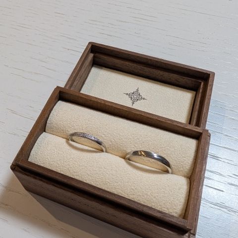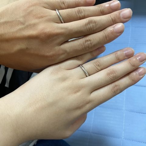 セミオーダーで進めたので、数ある要素と項目の中から希望するものを選択していく流れでした。 その結果、「デザイン」「つけ心地」など、全てにおいて理想的な結婚指輪を製作いただけました。 特に気に入っているのは内側の刻印です。 自分達で用意した手書きの文字をレーザーで刻印可能とのことだったのでお願いしましたが、完成品を見て、細かい漢字がつぶれずに刻印されていることにとても驚きました! オリジナリティを出すことができたので、お願いしてよかったです。