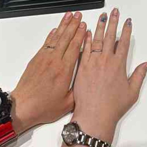 ペアリングではないですが、お互い好きなカタチ・色を選びました。結婚指輪は同じ感じがいいと思いがちですが違っても全然違和感ありません。シンプルなゴールド、捻ったようなデザインのシルバー型どちらも素敵でお気に入りです。