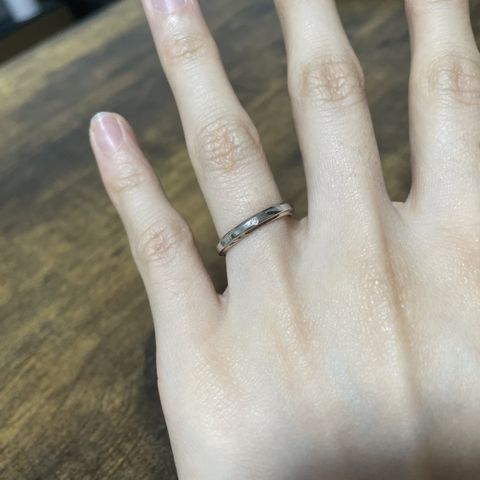 とてもつけやすく、流行にも左右されないデザインを選んだ。夫も気に入ってくれて、嬉しかったです。指輪を選ぶことが初めてで、なんでも良いと思っていたが、意外とこだわりがあるんだなと思った。重ね付けしても綺麗に見せてくれる。