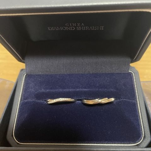 鍛造という作りで一つ一つ職人が作っているというところに惹かれました。 2人の希望デザインが別々だったのですが、ラインを入れるという所だけお揃いにするセミオーダーもできたのでお互い満足のいくものに仕上がりました。 指輪のケースもかわいく、とても気に入りました。