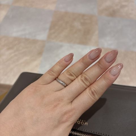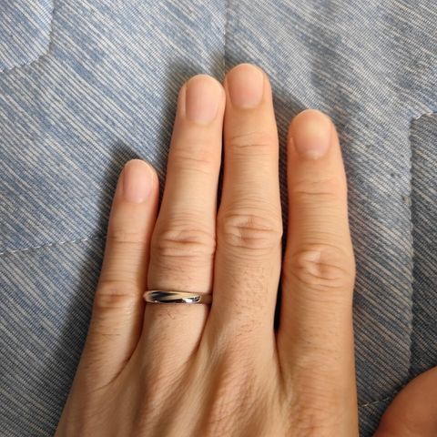 いろいろ試着した中で、着け心地が1番良くて、デザインもこの先ずっと着けていられるシンプルなものが良くて、その希望を叶えてくれるリングです。少し細めではありますが、細すぎず、太すぎずな太さでとても気に入っています。
