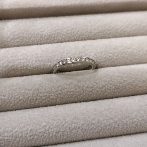 ふとした時にキラキラしているのを見ると綺麗で癒されます。また、レール留なので引っ掛かりがなくて日常使いしやすいです。ハーフエタニティなので手の平側で何かに当たったりしてしまってもそんなに気にしないですみます。
