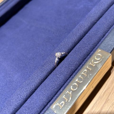 派手すぎず、一方でどの角度からもダイヤがキラッと見える華やかさもあり、 つけて嬉しくなる指輪だと思いました。 初めはダイヤがもう少し少ないデザインを選んでいたのですが、諦めきれず再度訪問してこちらのデザインに変更しました!満足です!