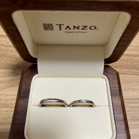 プラチナの平甲丸ストレートの指輪を作っていただきました。 シンプルな装飾のない指輪で、鍛造ながらの重厚感のある出来上がりでとても気に入っています。 サイズ・形状・素材など、たくさんの選択肢から自分たちで納得のいく指輪を作っていただけて満足しています。