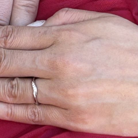 手の形的にどうしても指輪が斜めになってしまうのですが、斜めでしっくりくるようなデザインです。ダイヤのさりげないキラキラ感もお気に入りです!指の付け根が細いので回ってしまいますがダイヤがどの位置にきても不自然じゃないので回っても気にならないです。