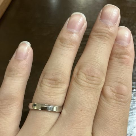 滑らかで着けていることを忘れるくらい着け心地の良い指輪でした。 また、シンプルなデザインながらも綺麗で精巧な作りになっていてよかったです。 刻印も希望のものがしっかりはいっており、よかったです。 色々デザインの要望が通り、とても嬉しいです。