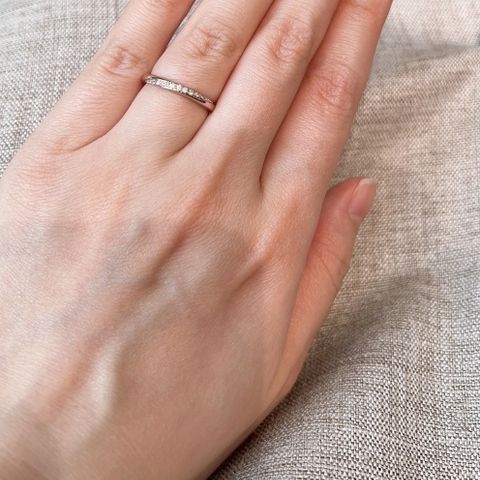 シンプルで華美なものが苦手な私にはちょうどよく、綺麗です。さりげなくダイヤモンドが入っており、上品さがあります。また、価格もハイブランドのように高額ではなくよかったです。細くつやがあり、手が綺麗に見えるような気がします。