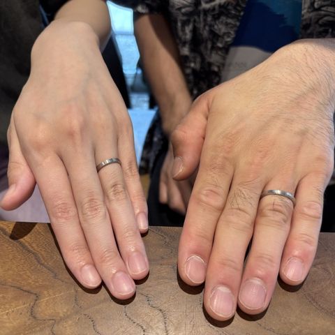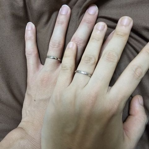 シンプルな指輪が良かったのですが、周りと同じものは避けたかったのでシンプルかつ自分たちらしいデザインにできたことが良かったです。2人でデザインや刻印を考える時間もとても楽しく思い出になりました!また、毎日つけたいので変形がしにくいリングというところがとてもいいなと思いました。