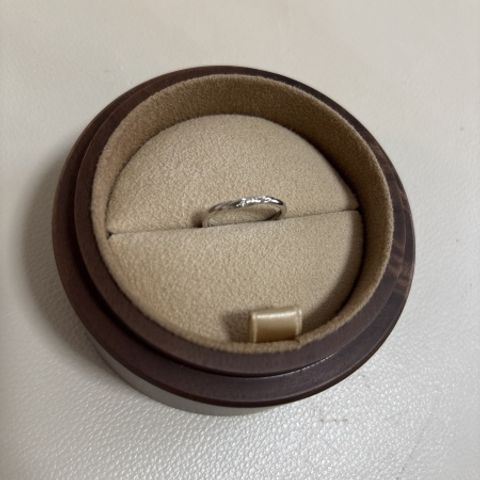 素材から完成まですべて手作りしました。 スタッフさんの接客も素敵で楽しく、作業中の写真もたくさん撮っていただいて最高な思い出と指輪ができました。 素材は普段外すことなく日常的に使用できるもの、アレルギーでないものを考慮してプラチナを選び、ダイヤを1つ埋め込みました。